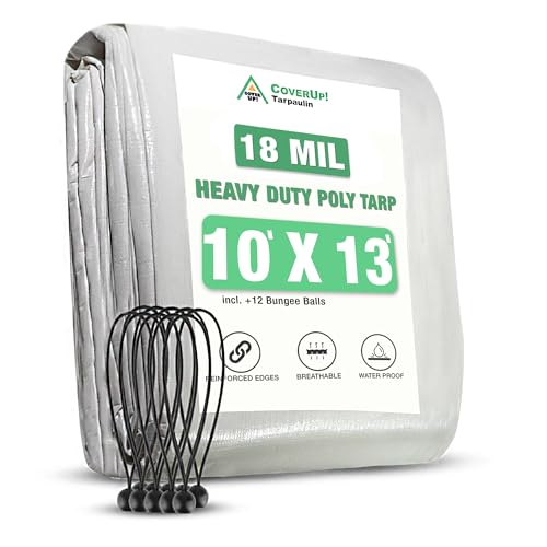 CoverUp! Telone di copertura, 3 x 4 m, 200 g/m², con 12 tenditori, con occhielli, impermeabile, colore: bianco