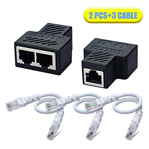 COVVY RJ45 - Adattatore per connettore splitter di rete da 1 femmina a 2 prese femmina per Cat 5/Cat 6 Lan Ethernet, cavo adattatore a doppia presa (2 pezzi + 3 cavi)