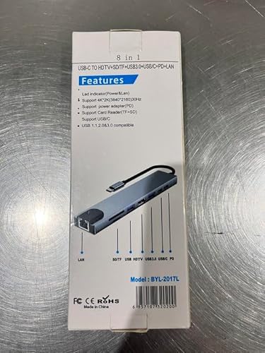 Docking station multifunzione 8 in 1: l'hub USB C è dotato di 1 porta di ricarica PD, 1 porta HDMI, 1 porta USB 3.0, 1 porta USB 2.0, 1 porta USB C, 1 porta SD/TF e 1 porta LAN, compatibile con Google Mac OS, Windows 7/8/10, XP.