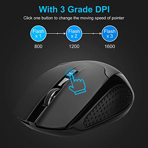 COVVY Mouse ottico senza fili USB 2,4 GHz con nano ricevitore design ergonomico, 1600 DPI 3 livelli di regolazione, per computer, laptop, desktop, giochi, ufficio, Win10/8/7/XP - Nero