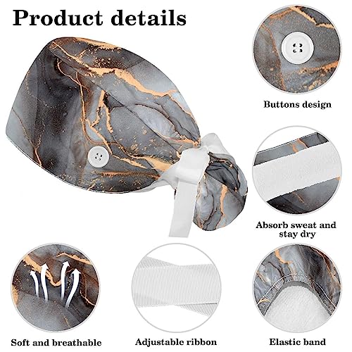 Anna Cowper Cuffia chirurgica in marmo verde acqua viola con bottoni e fiocco elastico per capelli per donne capelli lunghi, Multicolore 7, Medium