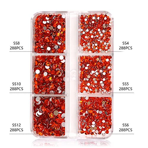 COYICOLI 1000 Pezzi AB Strass per Nail Art Gemme per Nail Art e Strass per Nail Art Deco in 6 Misure -Rosso(1,7-1,9-2,1-2,5-2,9-3,3mm) arancione