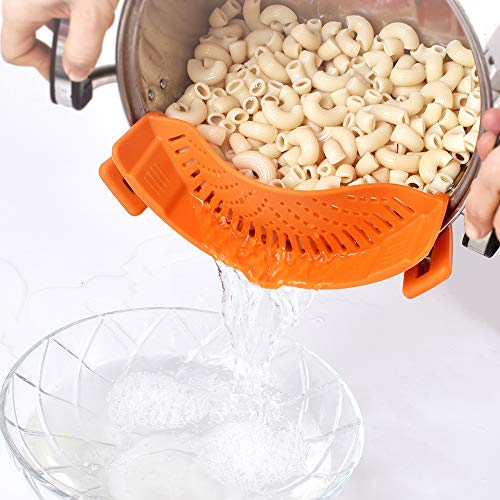 Cozihom Colino in silicone a clip per stufa, colino per pasta, colino, beccuccio per pasta, compatibile con padella, materiale per uso alimentare, resistente al calore, 2 pezzi, arancione
