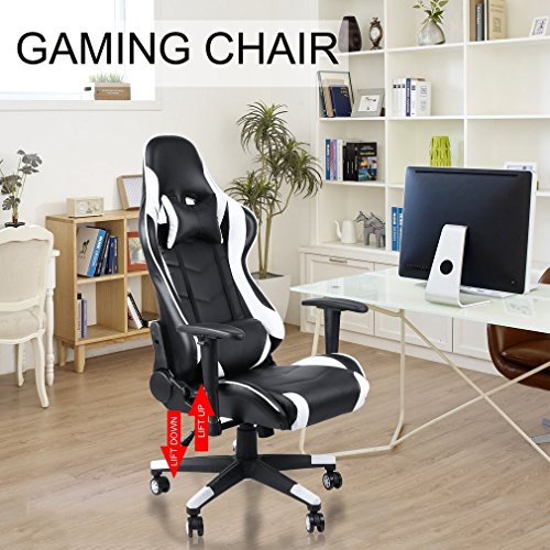 Cozime Gaming Sedia Girevole da Ufficio, 2 Cuscini Computer Schienale Alto con poggiatesta Supporto Lombare inclinazione bloccabile Sistema 180 ° Regolabile Posteriore/Braccia Sedia da Gioco-Bianco