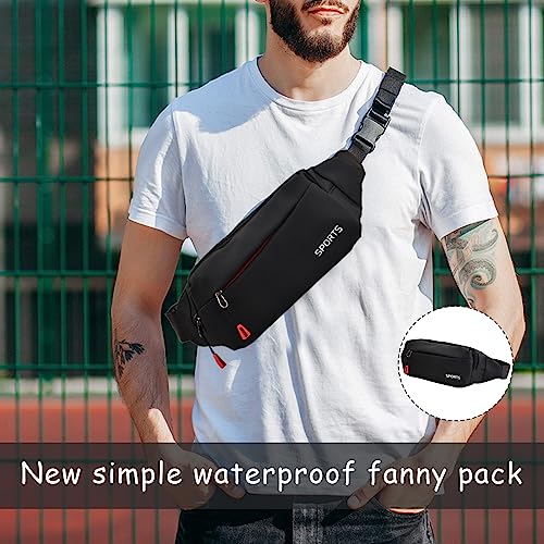 Cozlly Marsupio Uomo Donna, Marsupio Sportivo Impermeabile con 3 Zip Tasch e Cintura Regolabile, Nero Marsupio da Viaggo Leggera per Allenamento all'aperto Escursionismo Ciclismo Campeggio Viaggio