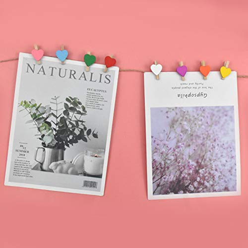 Cozlly 50 Pezzi Mollette in Legno per Decorazione, 3CM Mini Mollette di Legno, Mollette Decorative per Foto, Cuore Clip di Legno, Piccole Clip Robuste per Appendere Foto Scrapbooking DIY Decor
