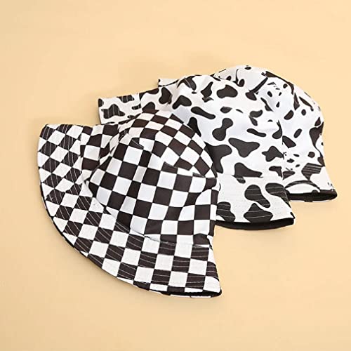 DESIGN ALLA MODA: questo cappello a secchiello retrò può essere indossato su 2 lati, un lato è a forma di mucca o plaid e l'altro lato è nero, che può abbinarsi a diversi stili di abbigliamento.