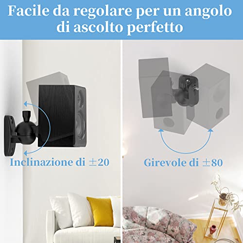 【Supporto per altoparlante regolabile】 Con la funzione di inclinazione di ± 20° e rotazione di ± 80°, puoi facilmente regolare l'altoparlante proprio dove ne avevi bisogno per ottenere l'angolo di ascolto perfetto.