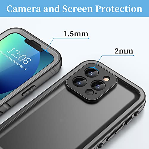 Cozycase Cover iPhone 13 Pro Impermeabile Antiurto - 360 Gradi Militare Rigida Armor 【2m Anticaduta/Anti Urto】 Custodia Subacquea Waterproof Antipolvere con Protezione/Copri Fotocamera/Schermo - Nero