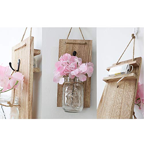 ✿ Di squisita fattura. Abbiamo messo insieme materiali di prima qualità per creare questi barattoli decorativi da parete. Ogni legno riciclato dispone di ganci in ferro battuto che sostengono il peso dei barattoli e abbiamo aggiunto strisce di luci a LED e ortensie decorative in seta per decorare con stile la vostra casa.