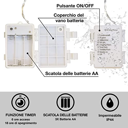 CozyHome Luce LED a Batteria - 20 Lampadario carta 7 Metri con Timer | Lanterne da esterno bianco caldo| lucine da appendere