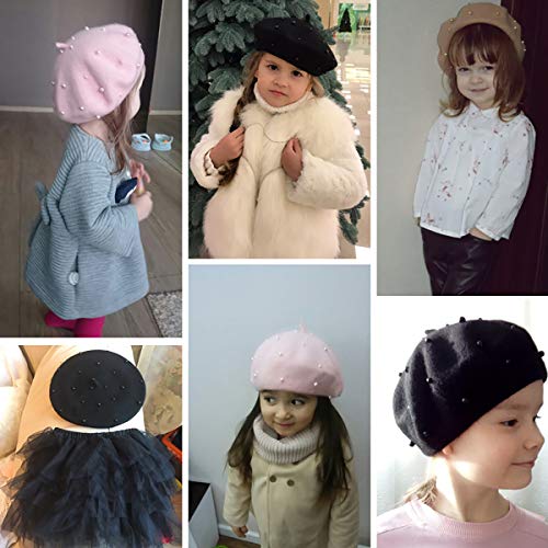 Cozylkx Berretto con Berretto in Lana per Bambini, Berretto con Berretto Invernale in Stile Francese per Ragazze con Perle Berretti Adorabili per 3-7 Anni Ragazze, Grigio Chiaro
