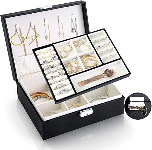 COZYSENSE Portagioielli Organizer, Custodia in Pelle PU a 2 Strati con Lucchetto per Collana, Orecchini, Anelli, Bracciale e Accessori, Confezione Regalo per Ragazze e Donne (Nero)