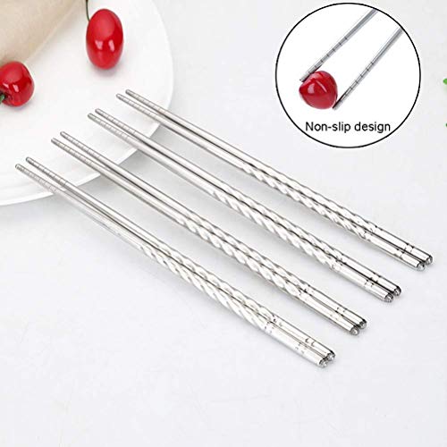 5 paia di bacchette in acciaio inossidabile, leggere e luminose.