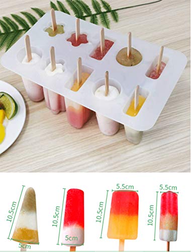 Cozywind Stampi Ice Bar Stampo ghiacciolo Makers 10 Set Ice Cream Vassoio Popsicle Frozen Yogurt Bar Ideale per la Preparazione di ghiaccioli, Gelati, sorbetti (Transparent)