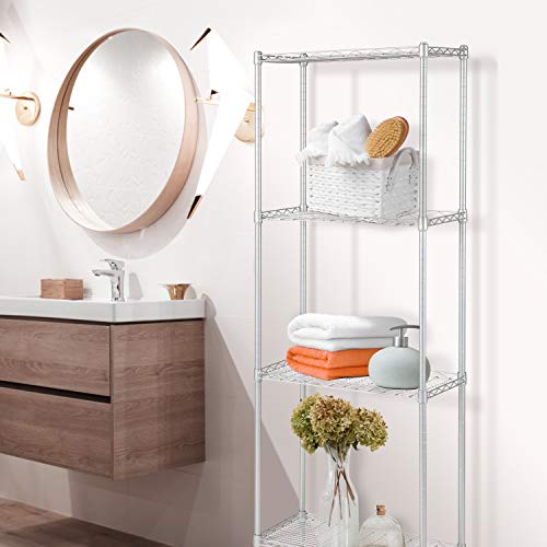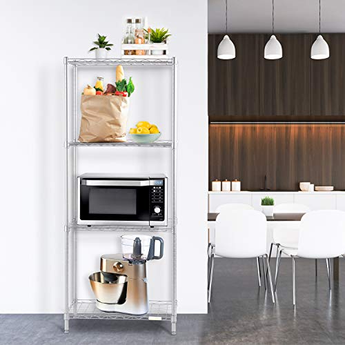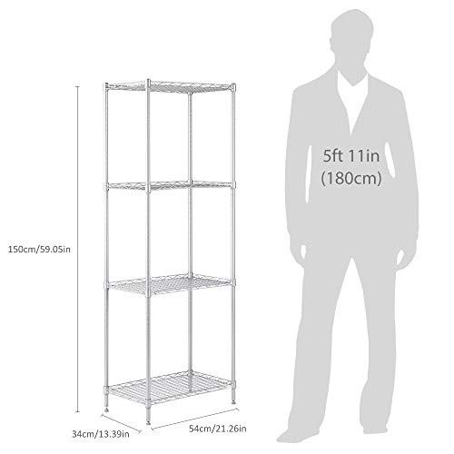 ♦SOLIDA E RESISTENTE: Questo scaffale 4 ripiani è costruita in acciaio al carbonio, sotto forma di una "ragnatela". Questa robusta costruzione rende ogni ripiano molto stabile, meno probabilità di oscillare o di essere danneggiato durante l'uso. Ogni ripiano dello scaffale cromato può supportare fino a150 sterline