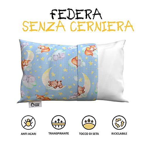 Cozzy Sloth - Cuscino Bambino 50x30 Antiacaro 100% Cotone Lavabile senza Zip, Cuscino Culla, Cuscino Lettino Bambino, Cuscino Neonato, Cuscino Bambino 2 Anni, Cuscino Bambino 3 Anni