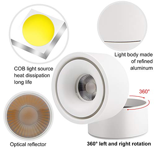 CPROSP 2PCS 10W LED Faretti a LED per Interni Plafoniera Faretti Regolabili Moderna per Cucina, Entrata, Corridoio Bianco Naturale 4000K, Bianco