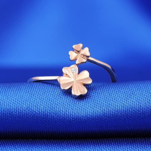 CPSLOVE Anelli trifoglio da donna ragazza, in argento 925, Elegante anello trifoglio, fede nuziale, anello di fidanzamento, anello aperto, misura regolabile, circonferenza delle dita adatto:48,5-57mm