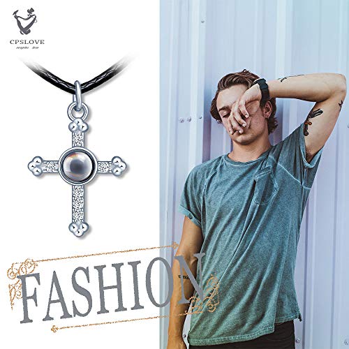 CPSLOVE Collana coppia di classica croce, Collane in argento sterling 999 per uomo e donna, zircone intarsiato, Ciondolo pietra nano con proiezione "Ti amo" in 100 lingue, Regalo di compleanno