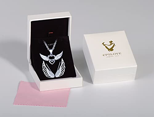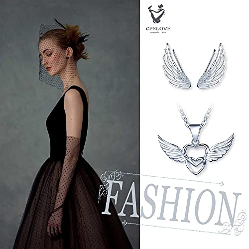 CPSLOVE Collana da donna ragazze, Orecchini da donna ragazze, Parure di gioielli in argento 925, Collana pendente cuore ali d'angelo, Orecchini Clip per orecchie di ali d'angelo, Zircone intarsiato