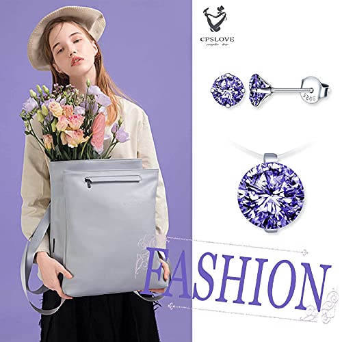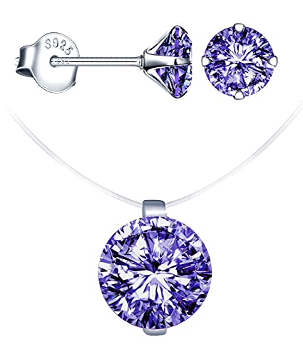 CPSLOVE Collane da donna, Orecchini da donna, Parure di gioielli in argento 925, Collana pendente di diamanti a catena invisibile in nylon trasparente, Collana girocollo, Orecchini di diamanti,viola