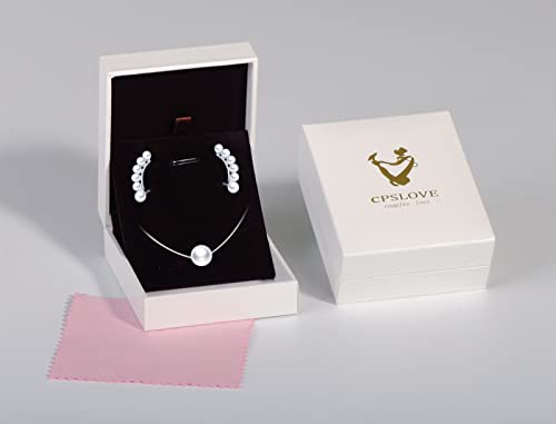 CPSLOVE Collane e Orecchini di perle da donna, Set di gioielli in argento 925, Elegante collana girocollo di perle, Con filo di nylon trasparente da 39cm, Orecchini di perle, argento
