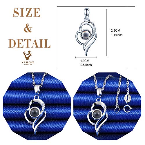 CPSLOVE Creativo Collana da donna in argento sterling 999, Collane di cuore elegante, Ciondolo pietra nano con proiezione "Ti amo" in 100 lingue, Regalo di compleanno di Natale