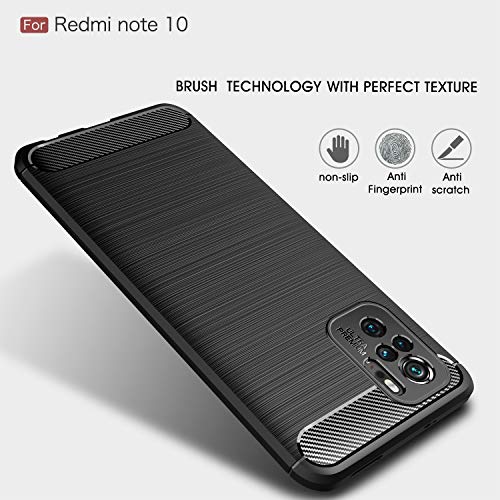 CQiuLi Cover per Xiaomi Redmi Note 10 4G + 3 Pezzi Vetro Temperato, Flessibile Soft TPU Spazzolato Custodia in TPU Morbido Fibra di Carbonio, Cover Protezione Anti Scivolo/Antiurto - Nero