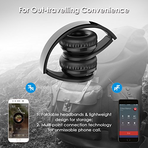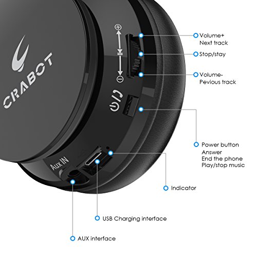 Crabot C2 Cuffie Bluetooth V4.1 pieghevoli su cuffia stereo Hi-Fi auricolari con microfono per iPhone iPad Smart Phones Dispositivi Bluetooth Nero
