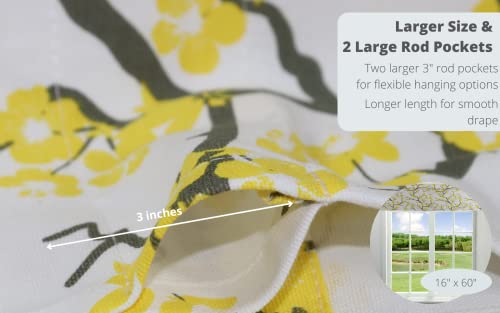 Crabtree Collection Tenda a mantovana classica per cucina, sala da pranzo, camera da letto, 40 x 152 cm, Cotone, Blossom Giallo/Grigio, 16" x 60" (40cm x 152cm)