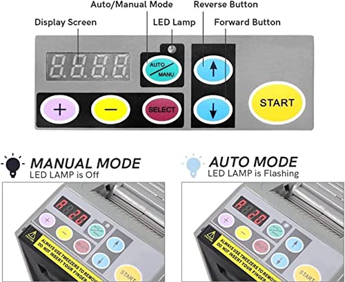 ●★ 【Modalità automatica/manuale】 -Questo taglianastro elettrico è molto facile da usare: caricare prima il nastro, quindi impostare la lunghezza richiesta, quindi impostare la modalità (automatica o manuale) e infine premere il pulsante di avvio. Una volta che la macchina ha assegnato la lunghezza corretta del nastro e l'ha tagliata, tirarla verso il basso.