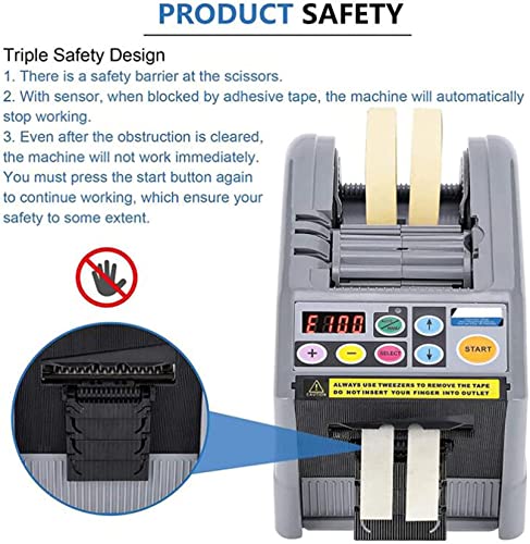 ●★【DESIGN A TRIPLA SICUREZZA】-① C'è una barriera di sicurezza sulle forbici. ②Con il sensore ottico, quando bloccato dal nastro adesivo, la macchina smetterà automaticamente di funzionare. ③Anche dopo aver eliminato l'ostruzione, la macchina non funzionerà immediatamente. È necessario premere nuovamente il pulsante di avvio per continuare a lavorare, il che garantisce in una certa misura la tua sicurez