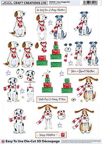 Craft Creations die-cut 3D decoupage - DCD640 di Natale Natale Doggie mix - Fun Dogs Natale all che indossa una sciarpa - A4 210 x 297 mm - step-by-step layout