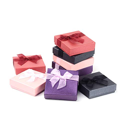 Craftdady Confezione regalo da 6 pezzi con coperchio, scatola quadrata in cartone con fiocco per gioielli, orologi, collane, orecchini, confezione regalo, 9 x 9 x 2,7 cm
