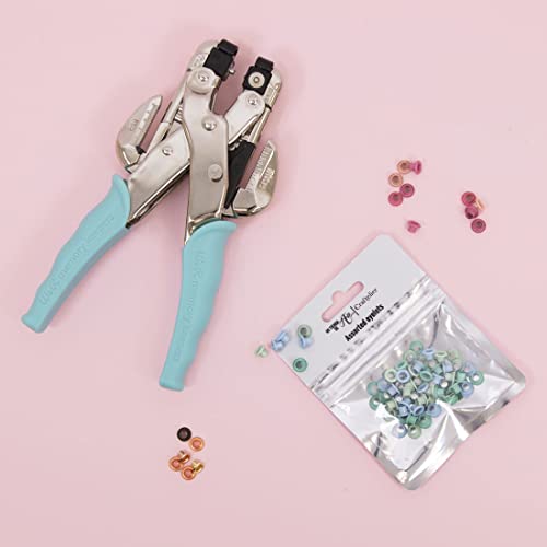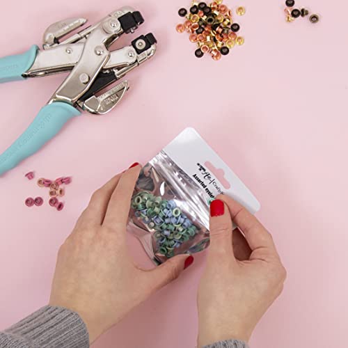 Craftelier + We R Memory Keepers - Kit per progetti di scrapbooking e artigianato con lo strumento Crop-A-Dile di colore turchese e 180 occhielli colorati assortiti con diametro esterno di 8 mm