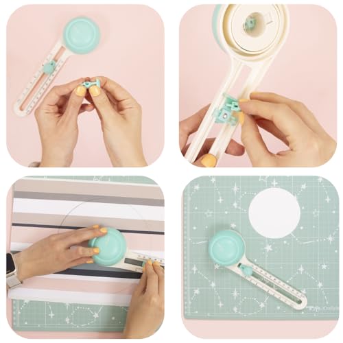 Craftelier - Taglierina circolare per progetti di scrapbooking e artigianato | Include 3 lame e testa di fissaggio | Cerchi tra 10,5 cm (4") e 30,5 cm (12") - Colore turchese e bianco