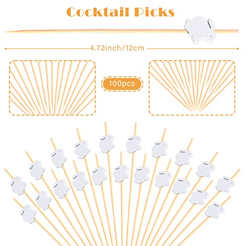 Crafterlife Spuntini da cocktail di coniglio, bastoncini di frutta, stuzzicadenti per sandwich, spiedini di antipasti di salumi coniglietto di Pasqua 4,7 pollici, 100 unità