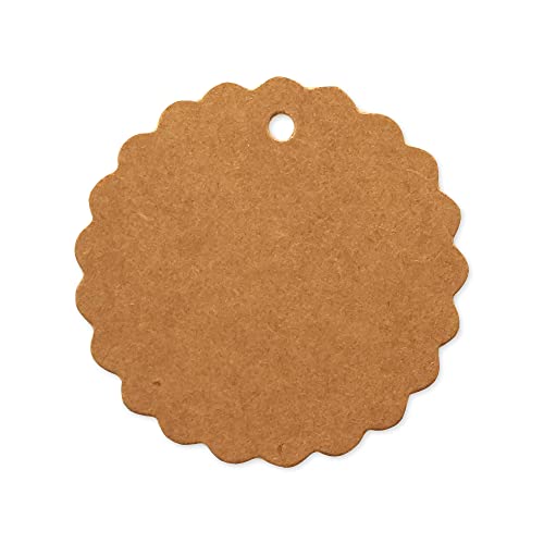LWR CRAFTS 100 cartellini smerlati rotondi con spago in iuta 100 piedi (5 cm, Kraft)