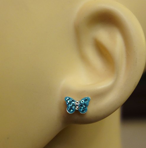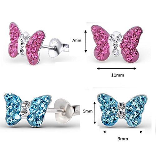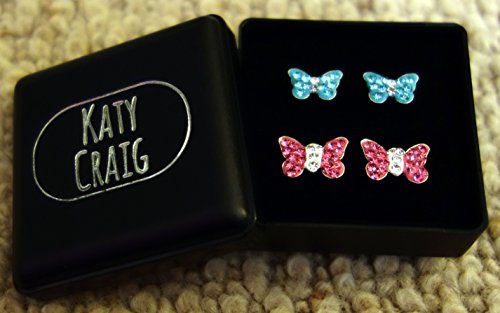 Katy Craig - Confezione da 2 paia di orecchini a bottone in argento Sterling con brillanti, colore: trasparente, blu e rosa, motivo: farfalla