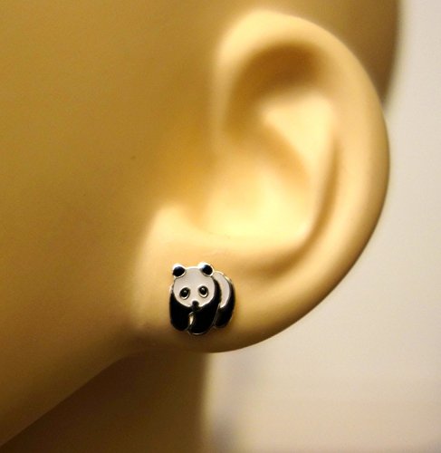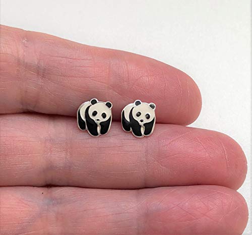 Katy Craig - Coppia di orecchini Panda piccoli, in argento sterling, misure: 0,9 cm x 0,8 cm, forniti in confezione regalo a sacchetto, colore: Bianco/Nero