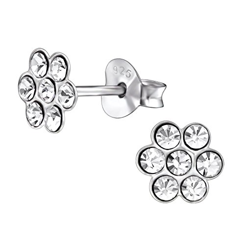 Katy Craig - Orecchini a lobo in argento puro a forma di fiore con cristalli (0,6 x 0,6 cm), in confezione regalo
