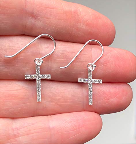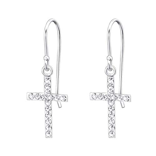 Katy Craig - Orecchini pendenti in argento puro a forma di croce con cristalli, (2,8 x 1 cm), in confezione regalo
