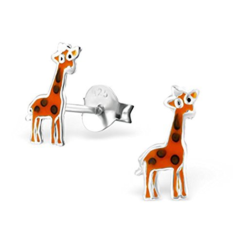Katy Craig - Orecchini a perno in argento puro, giraffa, piccole dimensioni 1 x 0,4 cm, forniti in confezione regalo, idea regalo, colore: Nero/Arancione