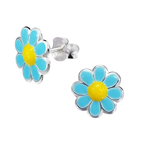 Katy Craig - Paio di orecchini a perno in argento sterling a forma di fiore, colorati con resina epossidica, 10 x 10 mm, confezione regalo inclusa, colore: Blu/Giallo