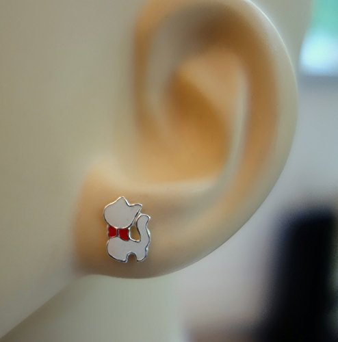 Katy Craig - Piccoli orecchini a lobo in argento Sterling, design con gattino, 1 x 0,7 cm, in confezione regalo, ideale come idea regalo