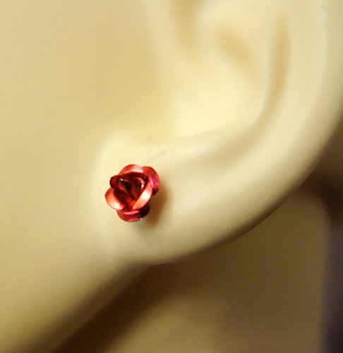 Katy Craig - Paio di piccoli orecchini a bottone in argento sterling con rosa rossa in alluminio, dimensioni 1 cm, fornito in confezione regalo