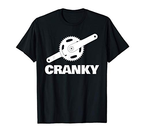 Funny Cranky tee for bike lovers who ride grumpy. Tee features a bicycle crank and the word cranky. A perfect tee for any mountain biker, bike rider or cycling fan. Funny Biking and Mountain Bike tee.