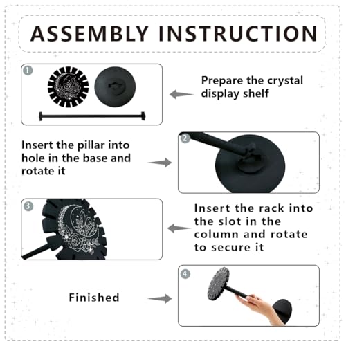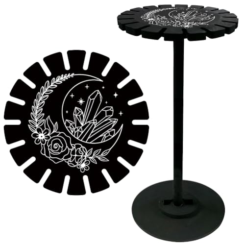 CRASPIRE Scaffale in Cristallo Scaffale in Cristallo Nero Espositore con Ruota del Pendolo Rabdomanzia Roba da Strega Supporto per Pendolo in Legno (Luna e Cristallo)