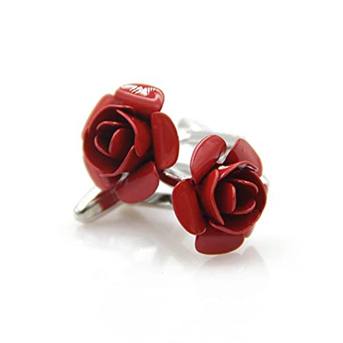 QFDM Cravatte Clip e Gemelli Camicie Rosse con Gemelli a Rose per i collegamenti del Polsino del gemello Vestiti e Accessori (Metal Color: Red)